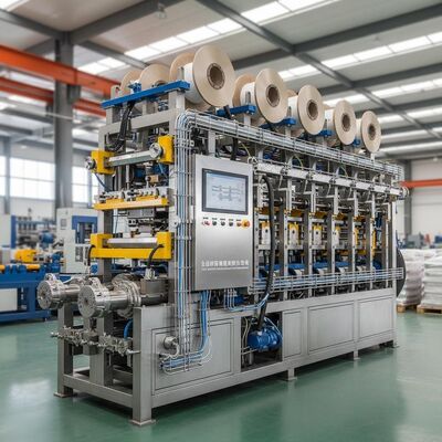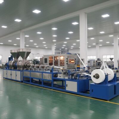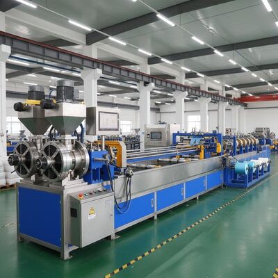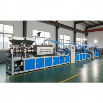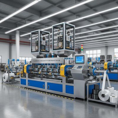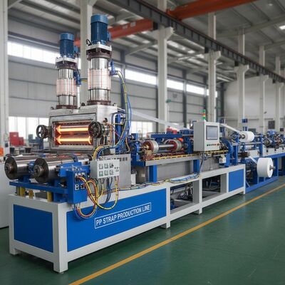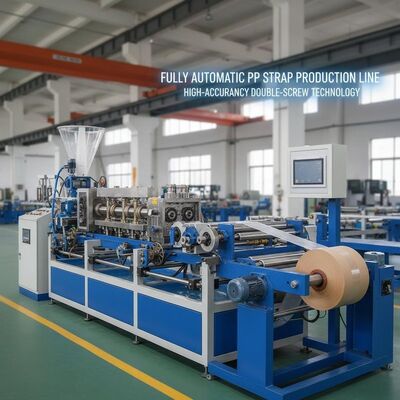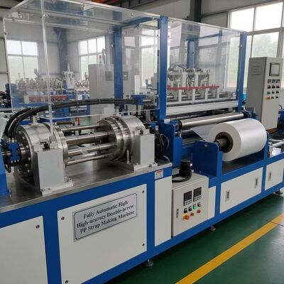 Высокопроизводительная двухшнековая экструзионная линия, предназначенная для производства 4 полос ПП-ленты с точностью и эффективностью. Эта автоматизированная производственная система обеспечивает стабильное качество продукции для производственных предприятий.